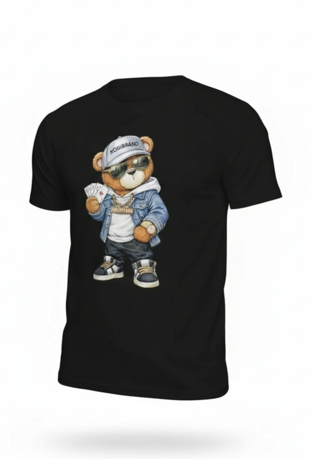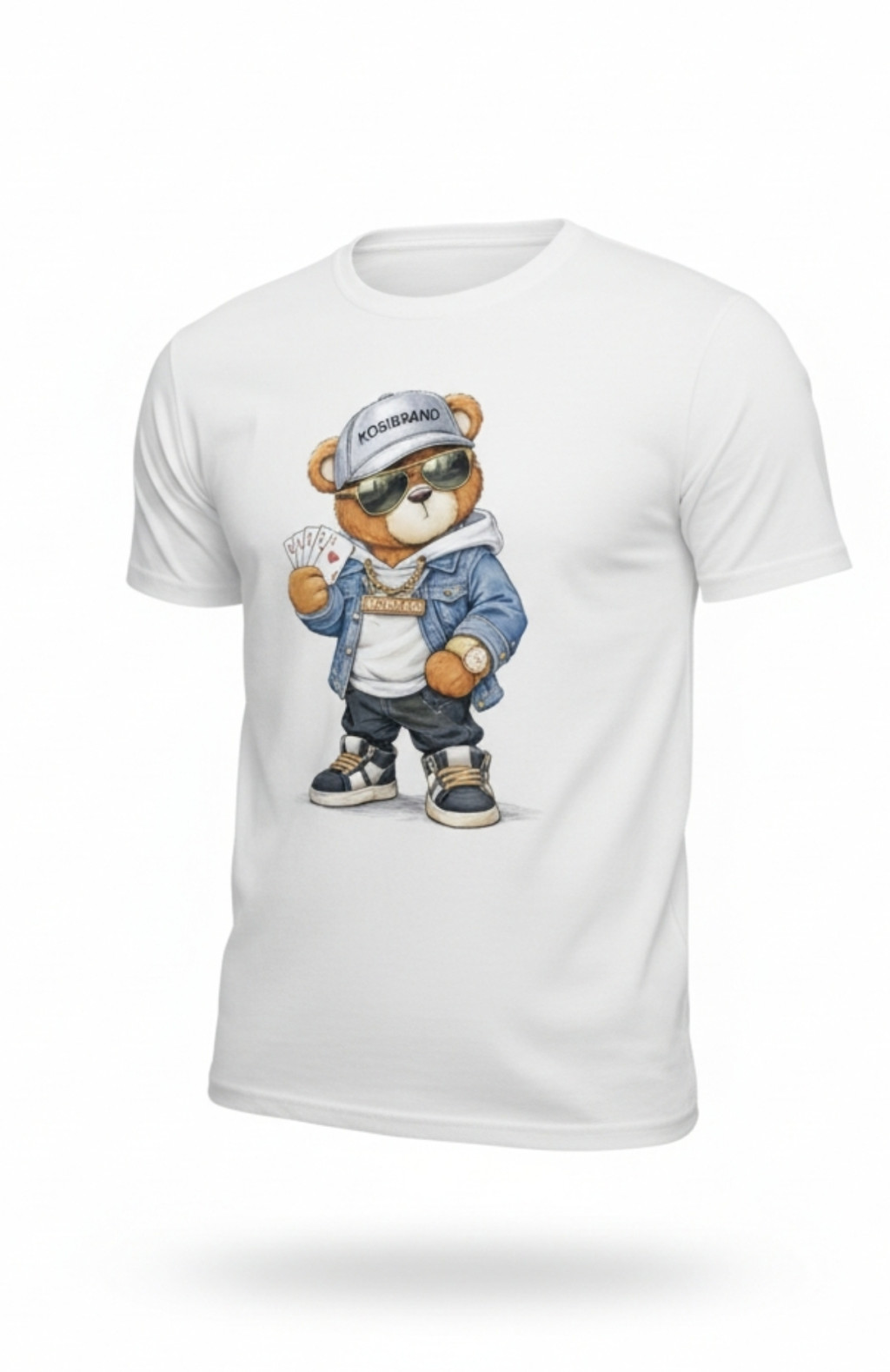 A vagány, napszemüveges maci grafika azonnal magára vonja a tekintetet – laza, mégis karakteres megjelenést ad.