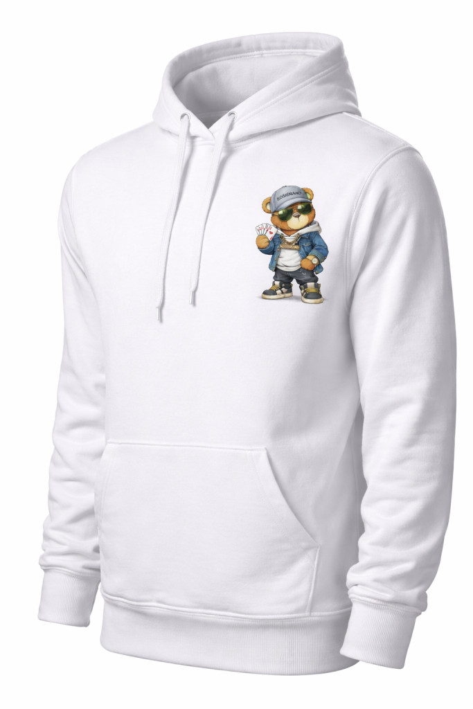 A mellkason elhelyezett vagány maci grafika karaktert ad, mégis letisztult marad az összhatás.