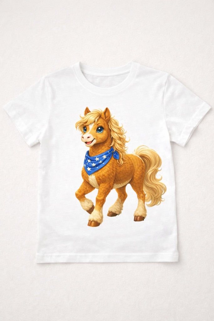 Ez a bájos, csillagos kendőt viselő póni minden kis lórajongó szívét azonnal elrabolja. Vidám megjelenése és kedves tekintete tökéletes választás mindennapi viselethez, óvodába, iskolába vagy ajándéknak is.